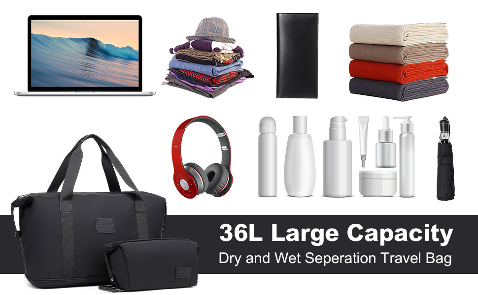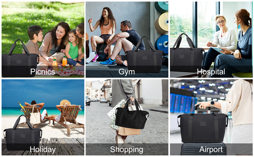 Uso versátil : esta bolsa de viaje es perfecta para diversas ocasiones, como deportes, compras, visitas a la playa o picnics, y tiene mucho espacio para todos sus artículos esenciales de viaje y fitness.