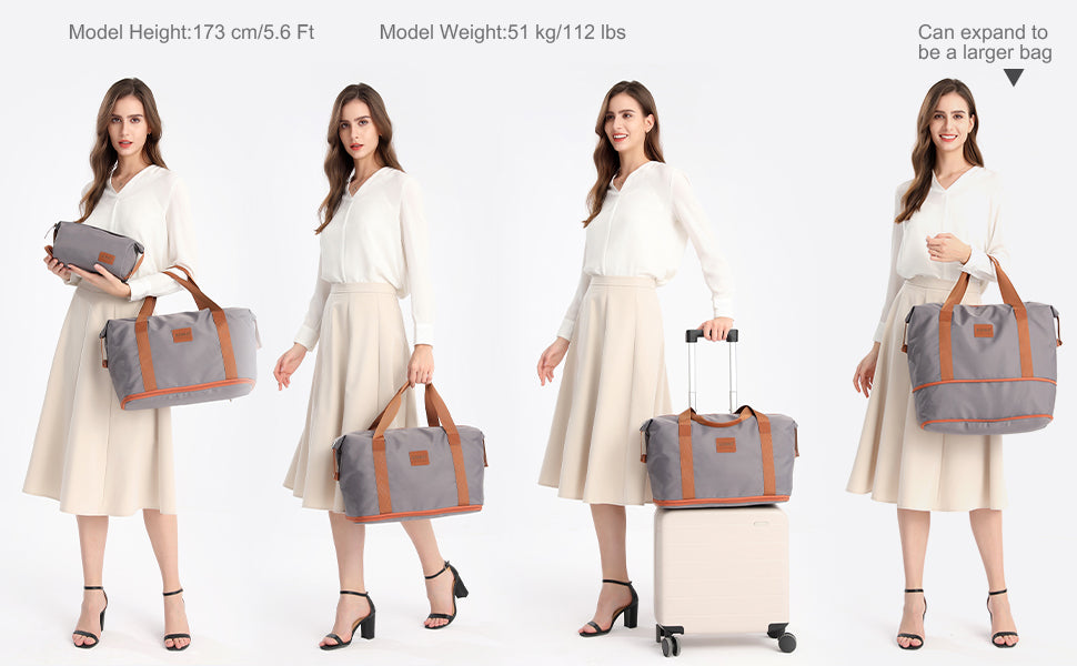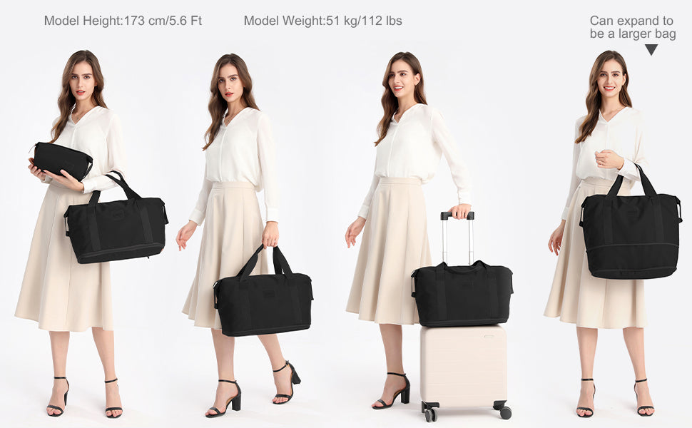 Bolsa de viaje de gran capacidad, ligera, expandible y elegante, bolsas de viaje expandibles con una bolsa de maquillaje separada