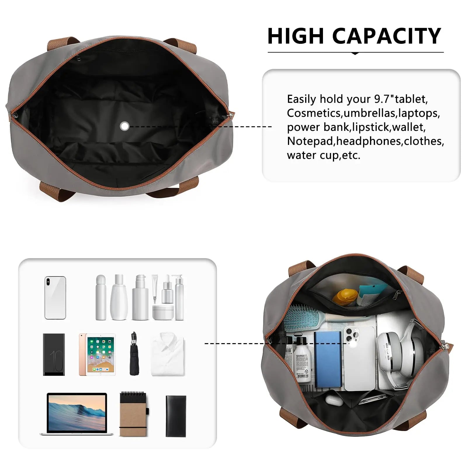 La bolsa de fin de semana está hecha de tela impermeable, duradera y resistente al desgarro, por lo que no tendrá que preocuparse de que el contenido de la bolsa se moje cuando llueve.