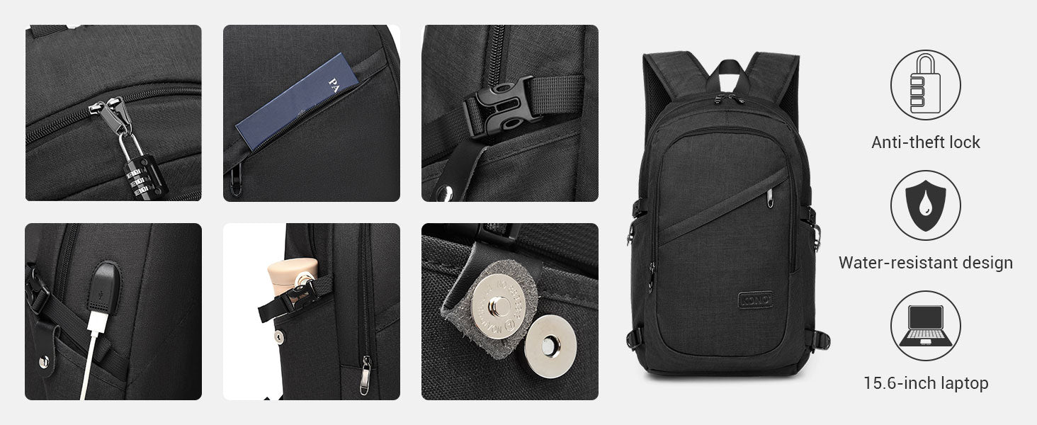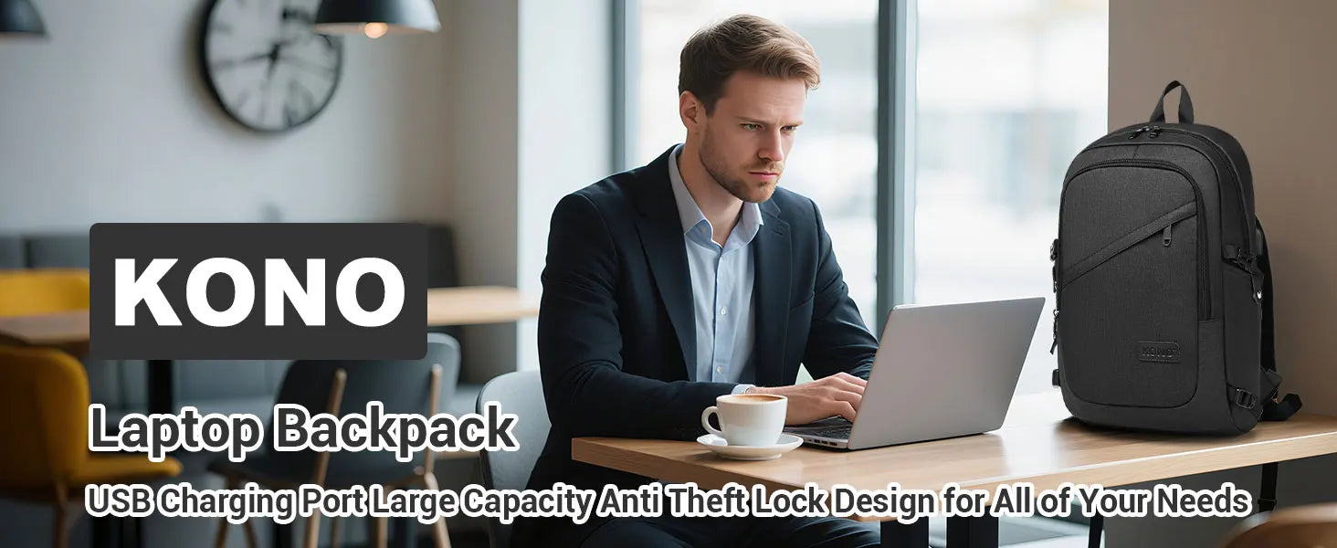 Material duradero y cómodo: La mochila para portátil Kono está hecha de poliéster resistente y cremalleras metálicas de alta calidad. Las correas de hombro transpirables y la espalda de malla proporcionan mayor comodidad y alivian la presión sobre los hombros, ideal para el día a día y para viajes.