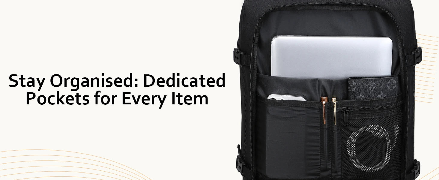 Comodidad y soporte para la espalda: La mochila cuenta con un diseño de espalda Airflow, correas de hombro transpirables y acolchadas, y una hebilla en el pecho para aliviar la presión. Ideal para viajes relajados, se puede guardar cómodamente en el carrito de una maleta.