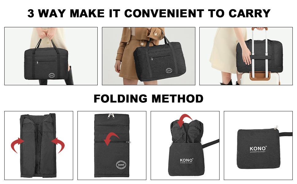 ✈ Práctica maleta con ruedas para un fácil manejo : La bolsa de viaje Kono cuenta con una maleta con ruedas especial que la hace aún más cómoda de llevar. Además, incluye una práctica bolsa con cremallera para guardar tus artículos esenciales diarios.