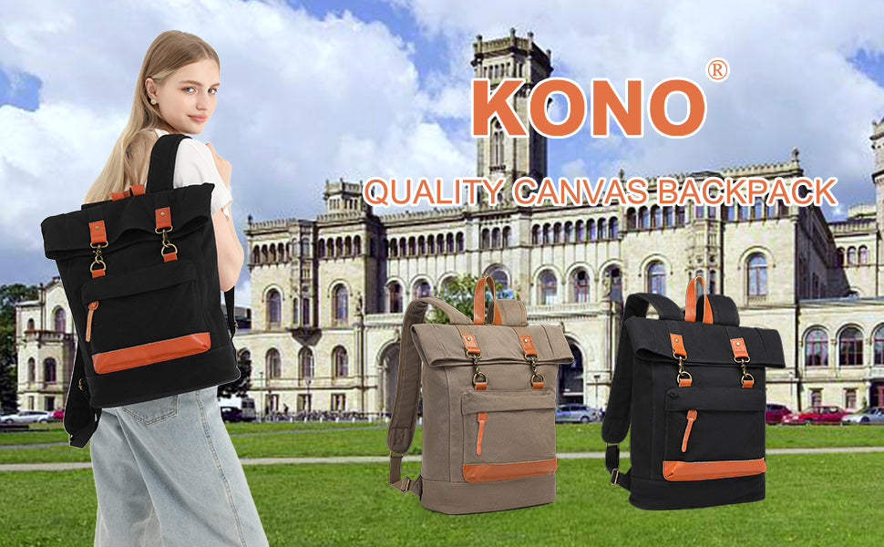 La versátil mochila Kono Canvas está diseñada para quienes desean ir a la escuela, viajar con la computadora portátil, hacer un viaje corto y hacer que la vida cotidiana sea informal.