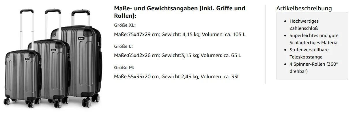 ✅✈ 2 años de garantía : Nuestra maleta está fabricada con material ABS robusto, lo que la hace resistente, ligera y resistente a los arañazos. Las esquinas delanteras cuentan con una protección de 4 piezas para mayor durabilidad.