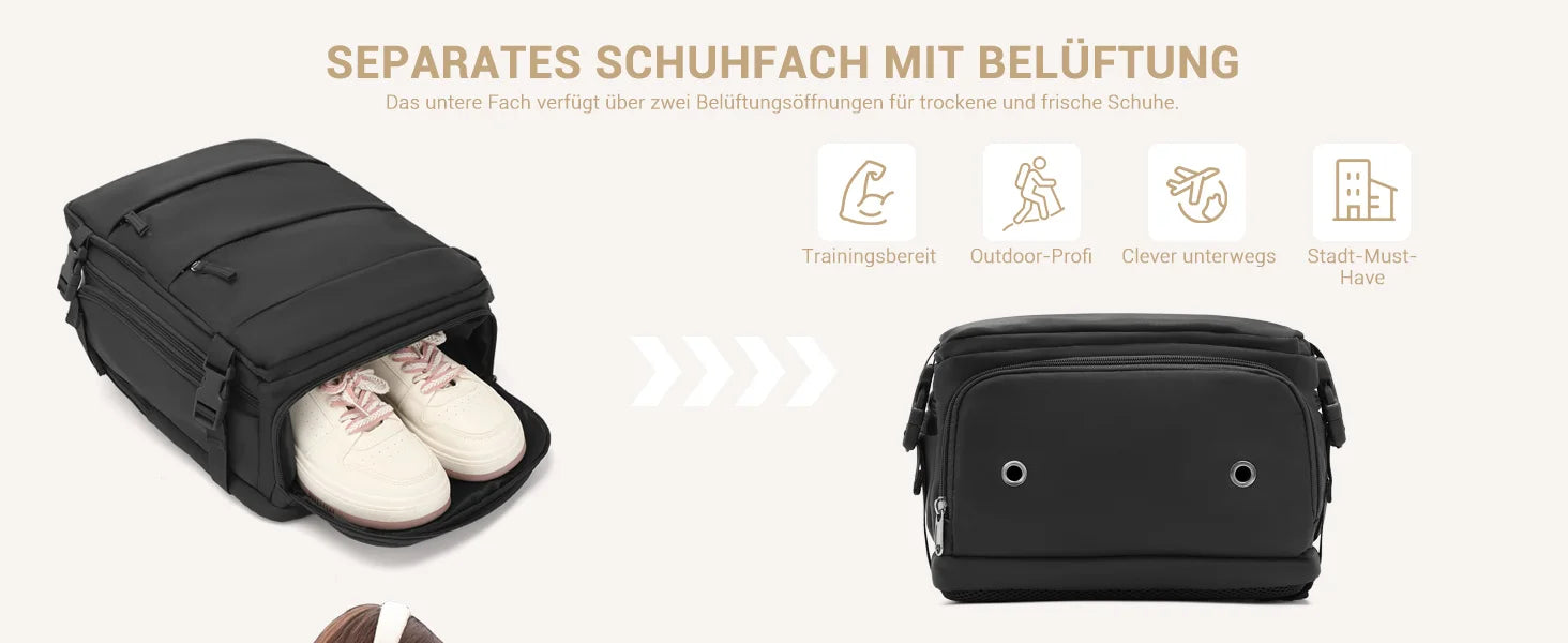 Compartimento ventilado para zapatos con circulación de aire para mayor frescura.