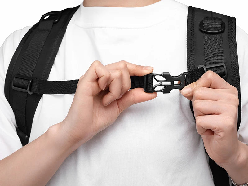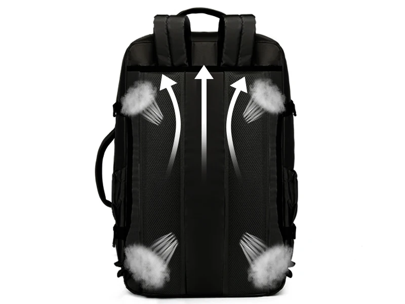 Material robusto e impermeable : Fabricada en poliéster 900D de alta calidad, la mochila es impermeable y extremadamente duradera. Las correas laterales de compresión reducen el volumen y evitan que los objetos se resbalen, mientras que la malla transpirable en las correas de los hombros y la espalda proporciona mayor comodidad y ventilación.