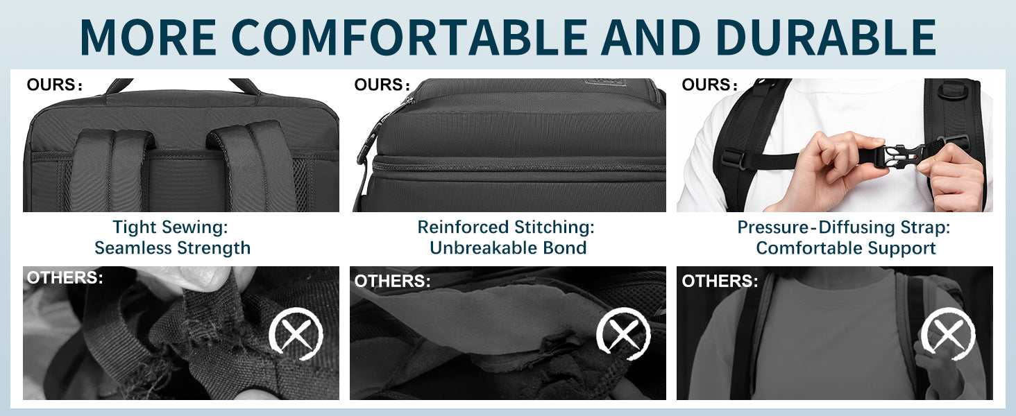 Diseño multifuncional para mayor comodidad : La mochila se convierte rápidamente en un práctico bolso de mano gracias a sus correas de hombro acolchadas ocultas, que se guardan en el compartimento trasero cuando no se usan. Con dos asas acolchadas en la parte superior y lateral, puedes llevarla fácilmente en la mano o colgada del hombro.