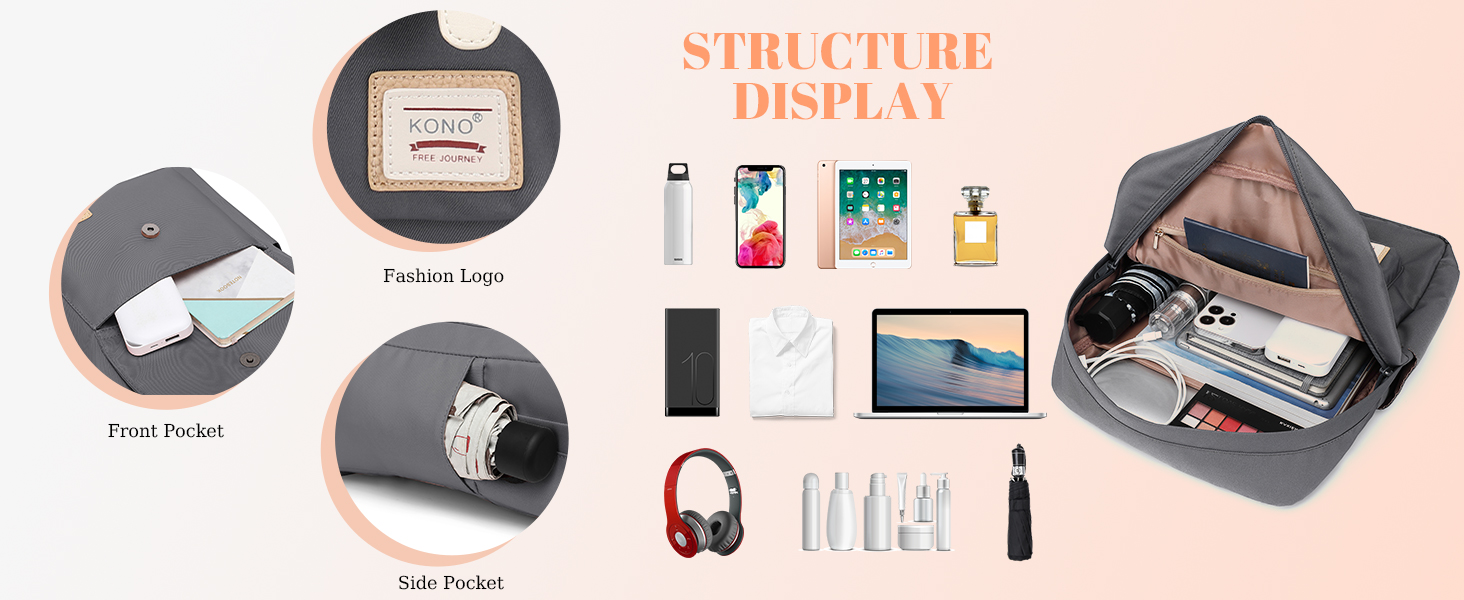 Diseño atemporal : La mochila escolar Kono impresiona con su diseño sencillo y clásico, y siempre está a la moda. Está disponible en tres colores: negro clásico, gris versátil y rosa vibrante. Ideal para el día a día y para viajes cortos.