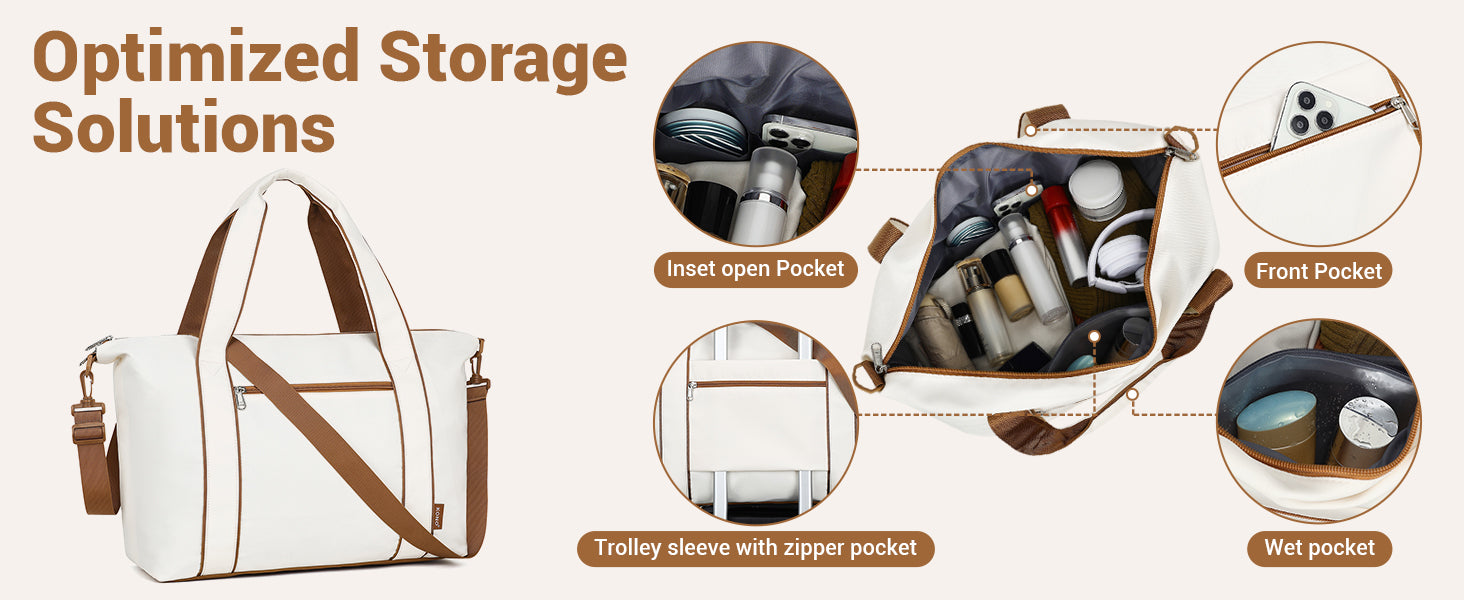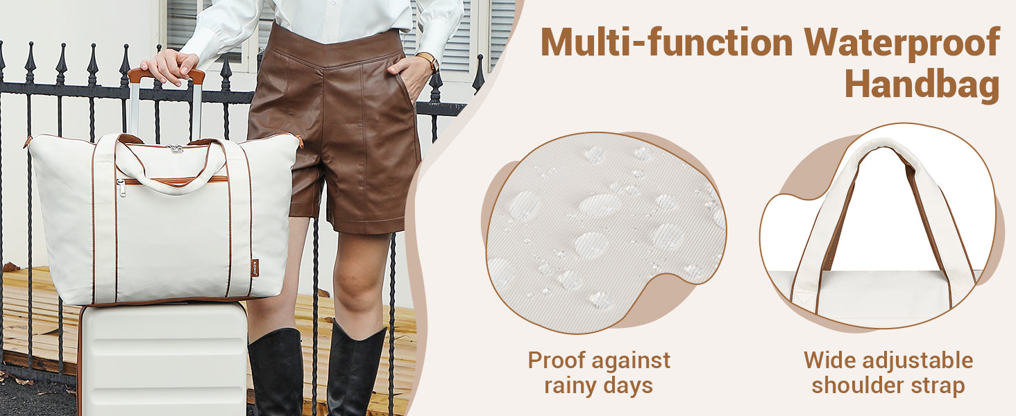 Tejido resistente y a prueba de fugas : Fabricada con material a prueba de fugas, esta bolsa de fin de semana garantiza el almacenamiento seco de tus pertenencias. Cremalleras robustas y correas reforzadas garantizan una gran durabilidad y una gran capacidad de carga.