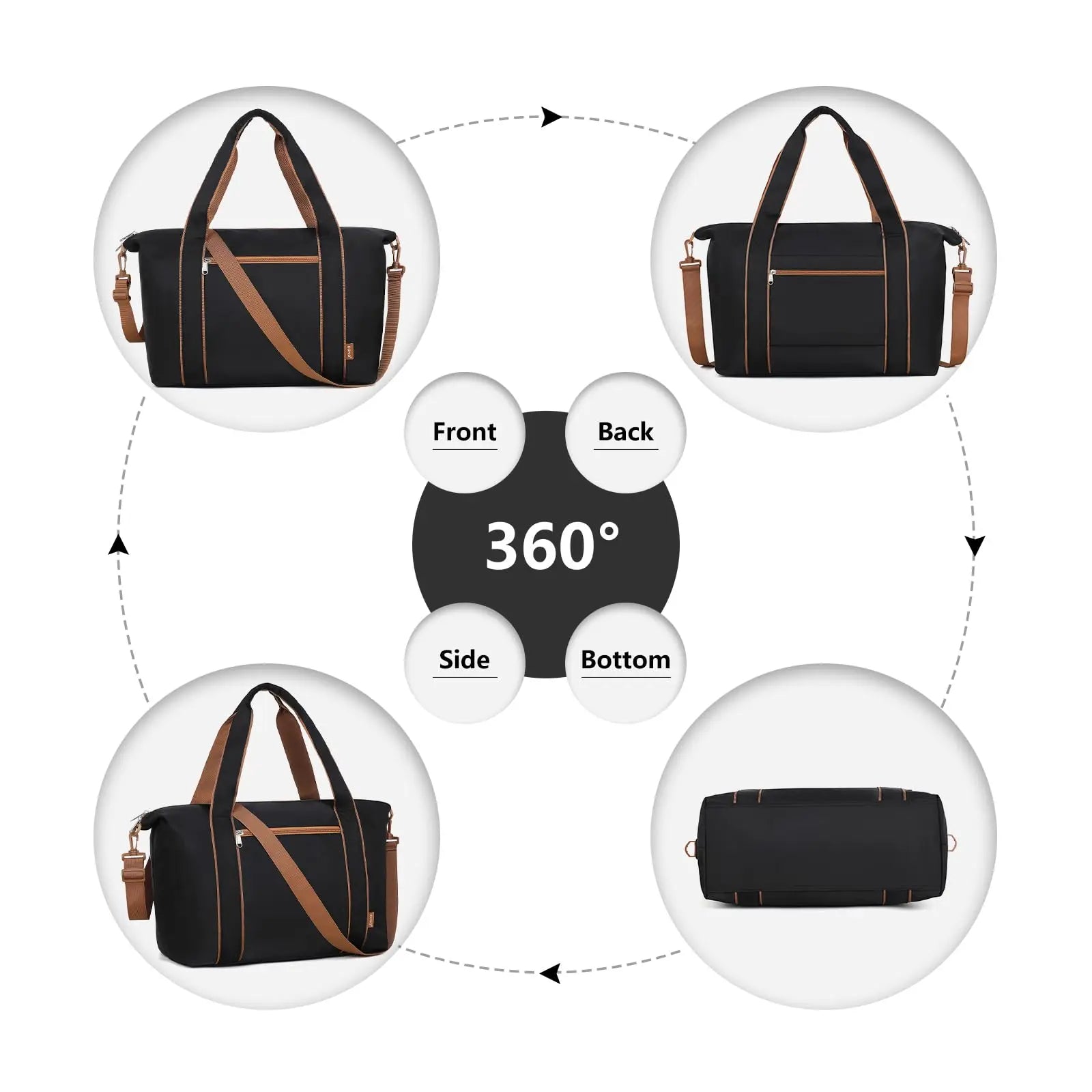Transporte cómodo : La bolsa de viaje cuenta con una maleta trasera con ruedas que también puede usarse como bolsa con cremallera. Se desliza fácilmente sobre las asas de la maleta, por lo que es ideal como equipaje de mano y como bolsa de viaje bajo el asiento para controles rápidos en el aeropuerto.