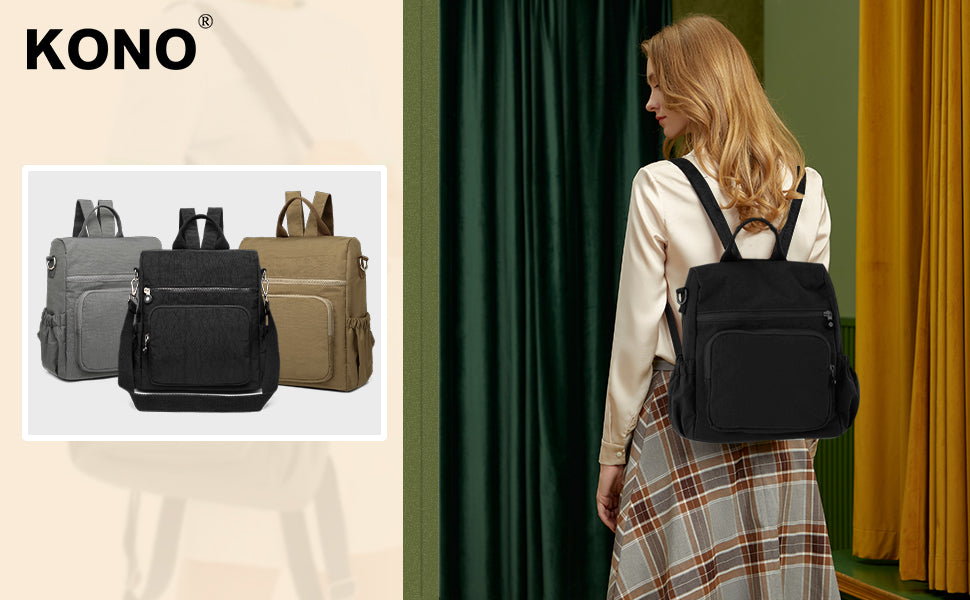 Mochila Kono para mujer, bolso de hombro informal, bolso cruzado de nailon, bolso de viaje, para el trabajo y la escuela.