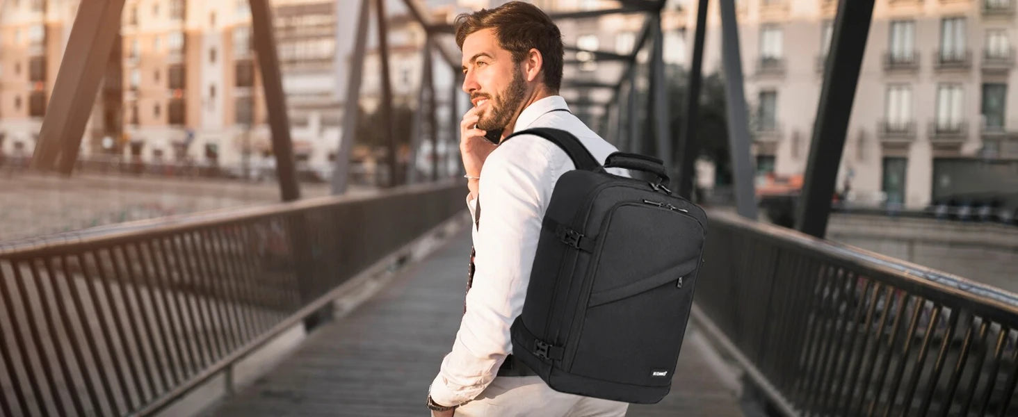 Compacto (40×20×25 cm, 20L):Ideal como equipaje de mano en el avión (compatible con Ryanair)