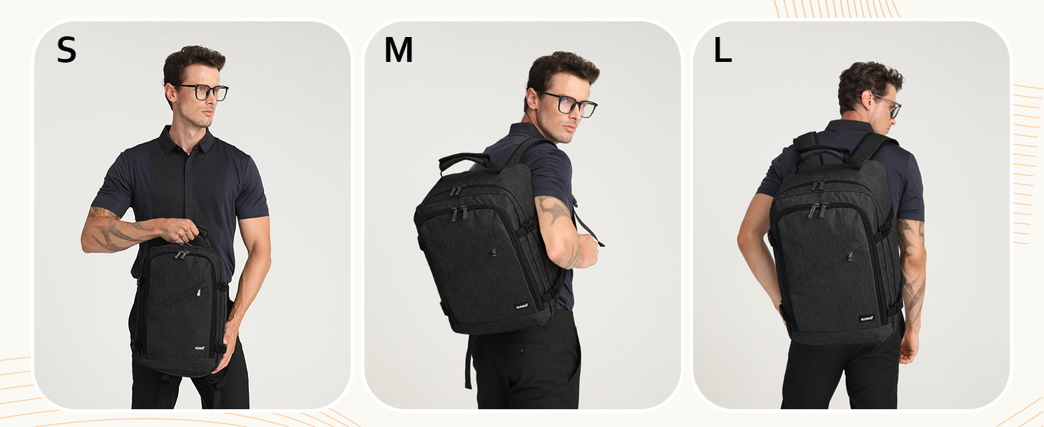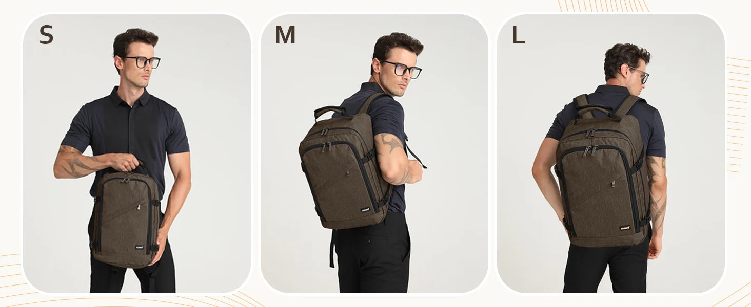 Mediano (45×33×20 cm, 30L):Compañero óptimo para viajes cortos.